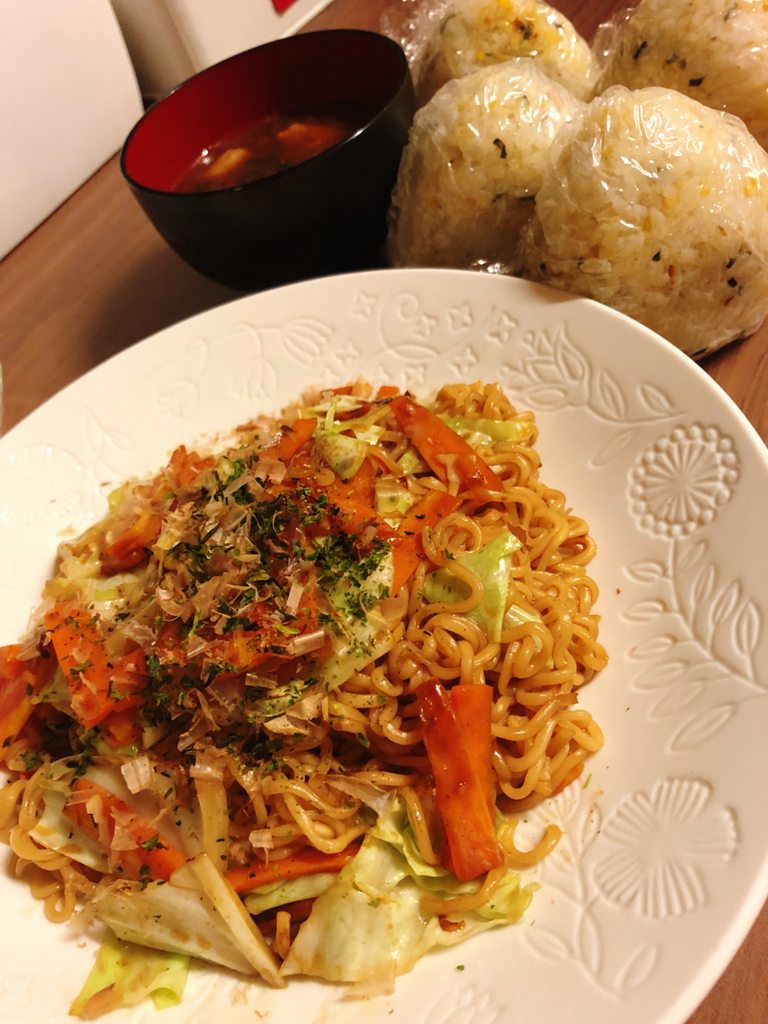 肉なし焼きそばで炭水化物+おにぎり4個の炭水化物