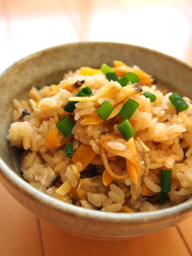 カニご飯かな、炊きあがったあと身を取り出して混ぜる手間があるけど
