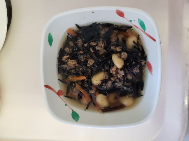 ひじきの煮物なんて最高じゃないか…まぁ味付けは薄いかも知れないがw