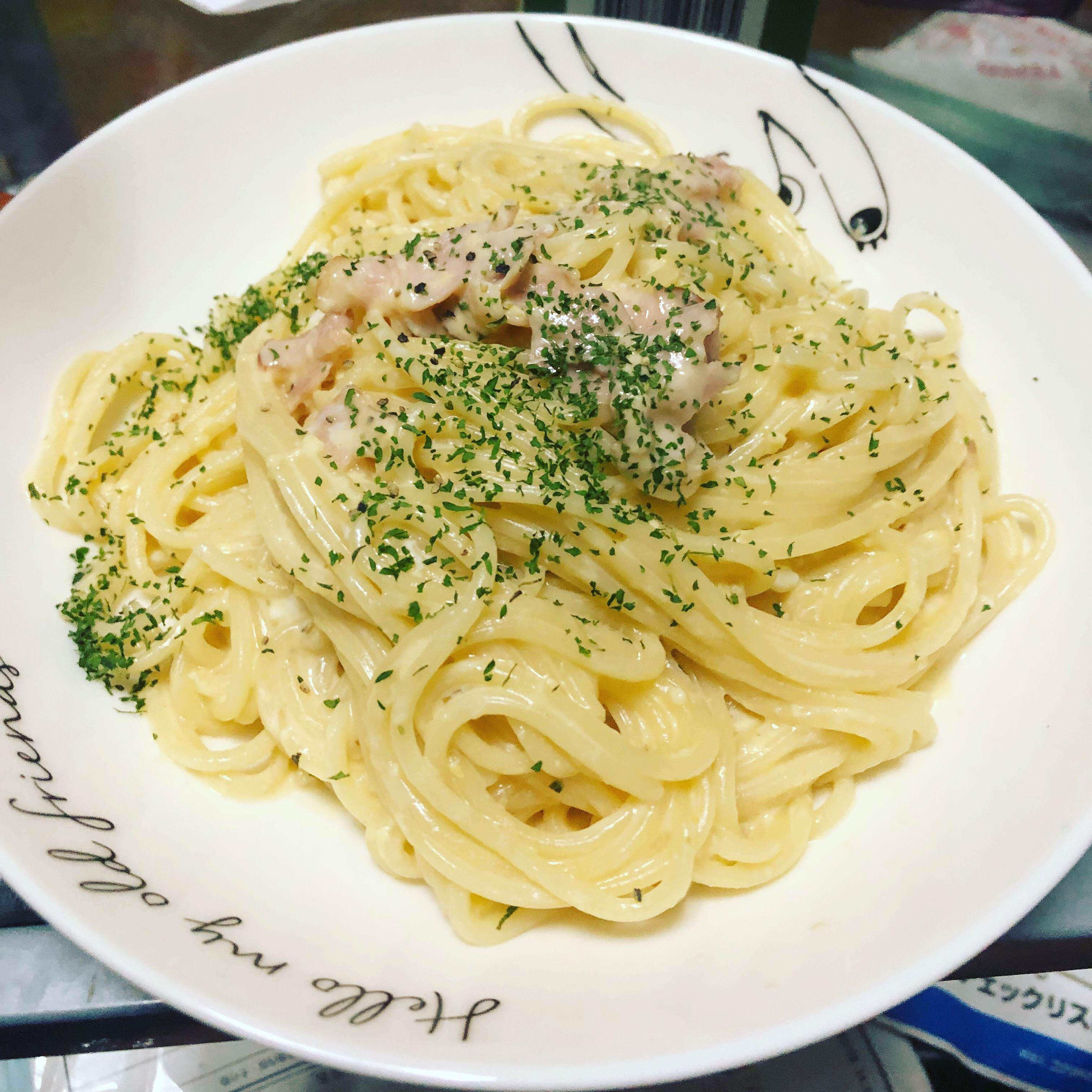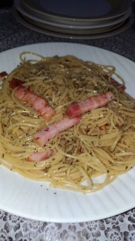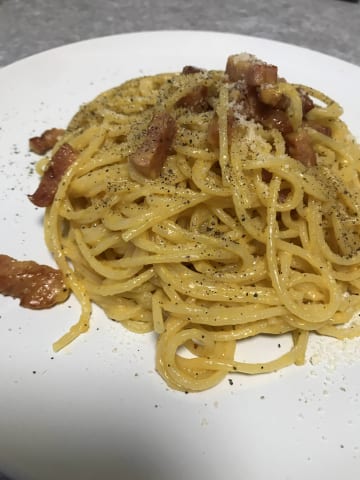カルボナーラはペペロンチーノっぽいの作って最後ボールで卵黄チーズと混ぜてるわ