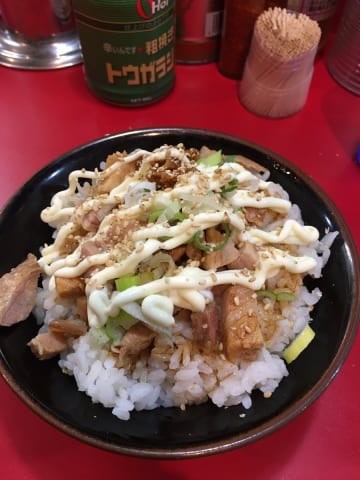 開店直後にいってクズチャーシューをライスに山盛りに入れる