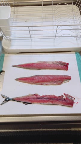 秋刀魚三枚おろしするときは開きにしてから半分に割るとまな板とか汚れにくくて綺麗に出来るで