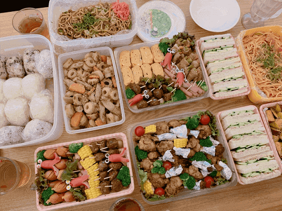 おにぎりがあるのにサンドイッチとスパゲティ!?炭水化物大杉!手抜き!って叩かれそう(こなみかん
