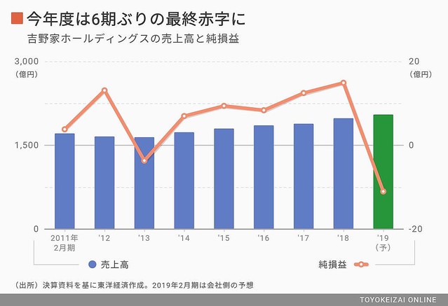 6期ぶりの最終赤字の見通しとなった吉野家ホールディングス。