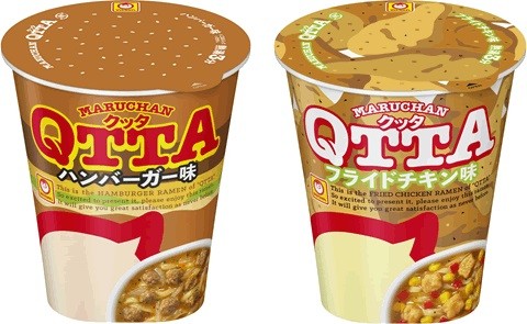東洋水産は、たて型カップ麺「MARUCHAN QTTA(マルチャンクッタ) ハンバーガー味/フライドチキン味」を、2018年10月15日に発売する。