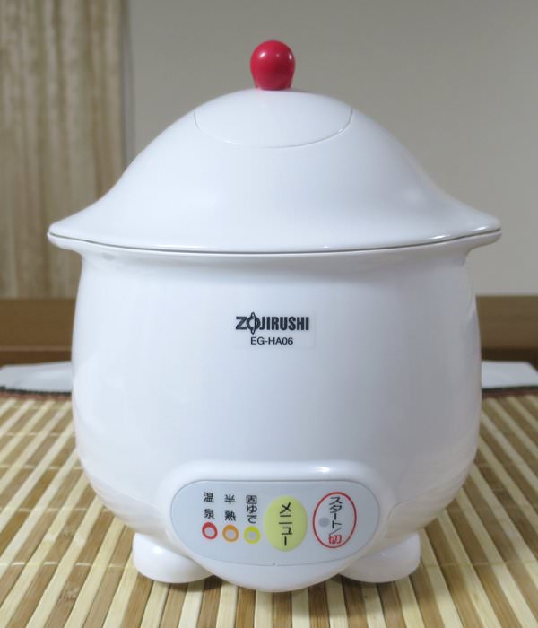 象印の温泉卵作り器持ってる、時間考えなくていいし失敗ないから楽だね。