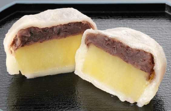 小豆や栗が入ったカステラをバウムクーヘンで挟んでる感じやで