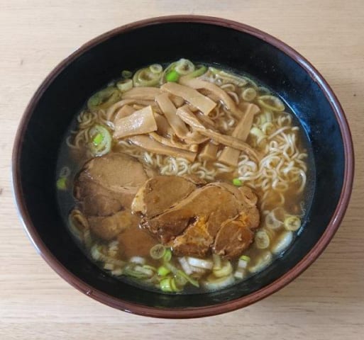 チャーシューとメンマとネギをのせればそら美味そうに見えるわ