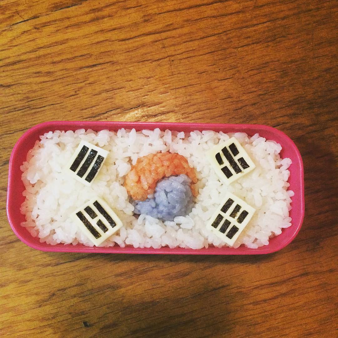チキンライスとチーズで旭日旗にしたら美味しいしやろ。
