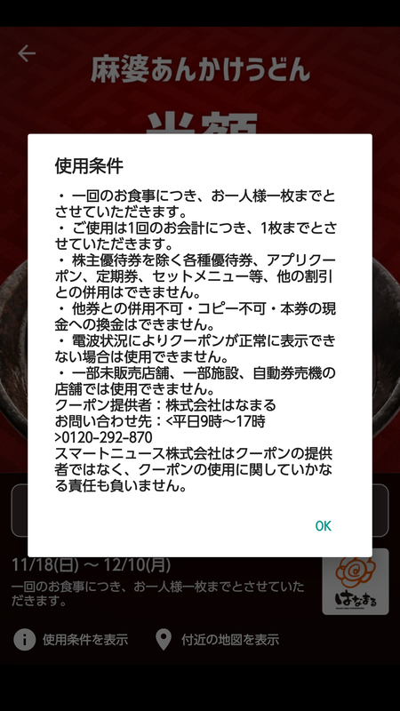 アプリクーポン表示自体に時間制限あり。