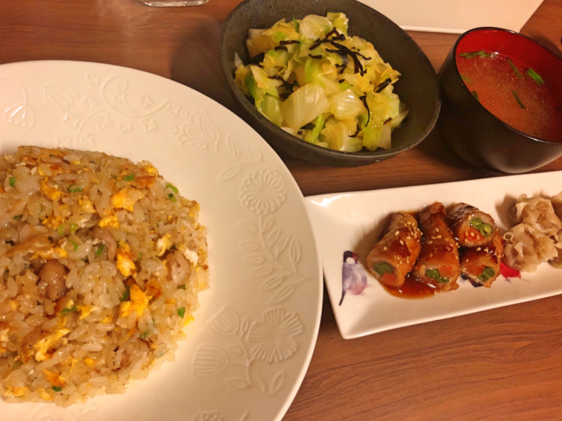 チャーハンよりシュウマイと肉巻きが冷凍っぽい