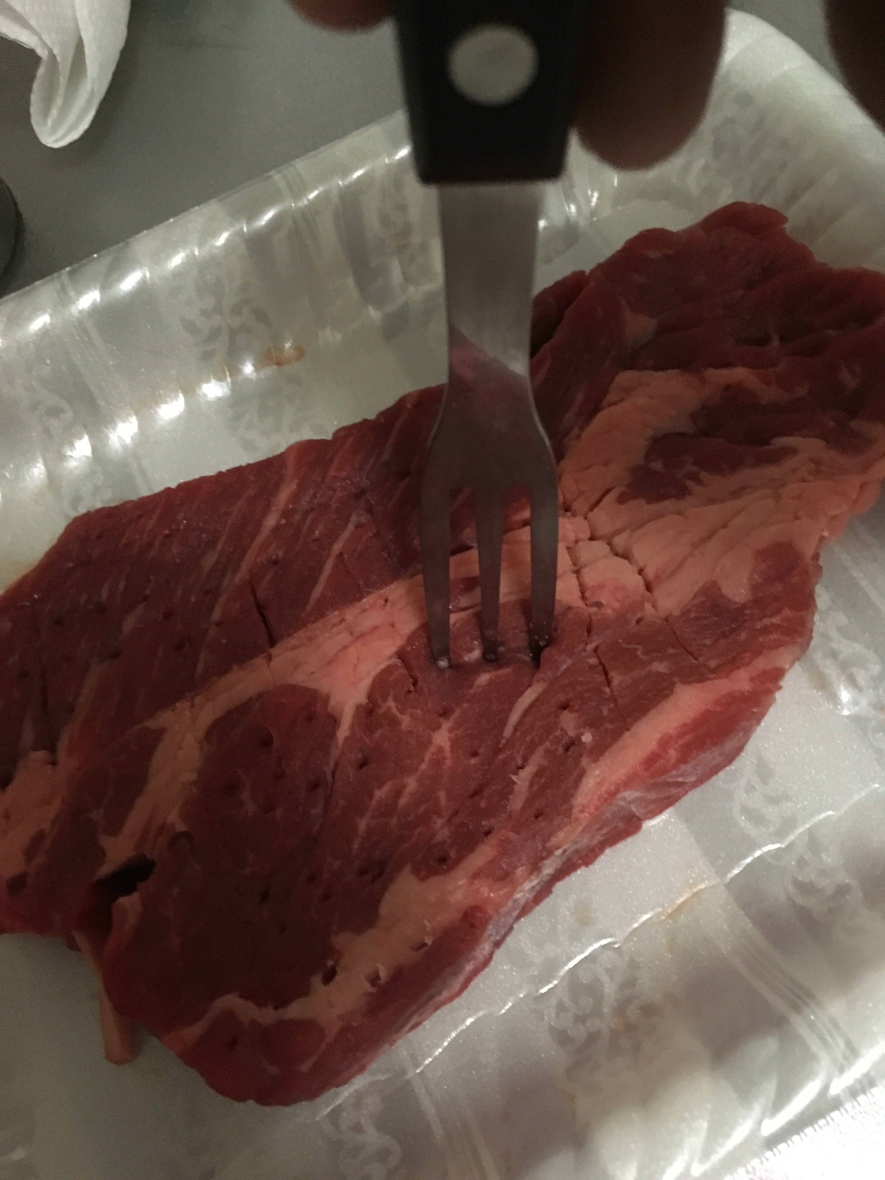 今までは何もせず塩胡椒だけで高温調理してたけど、筋切りとフォークぶっ刺して低温で長時間調理したらクッソ上手くてわろた