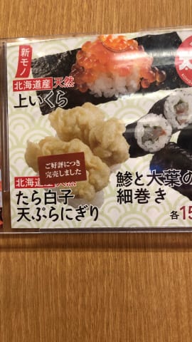 >>98 軍艦に白子ポン酢があるな あと天ぷらもあったみたい