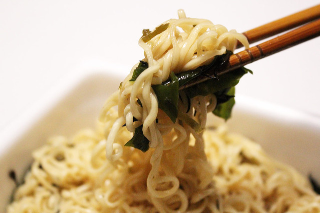 ↑湯切りをしたあと。麺の上に大量の海藻が出現しました