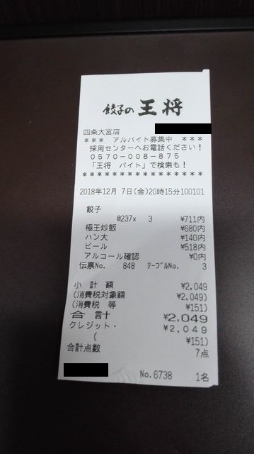 いつもビールセット(大瓶+餃子1人前、キムチ、唐揚げ2個)で1000円、〆にチャーハンか天津飯で500円で2000円以内で足りるけどなぁ