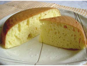 炊飯器ケーキ、通常はこの程度の生焼けなら
