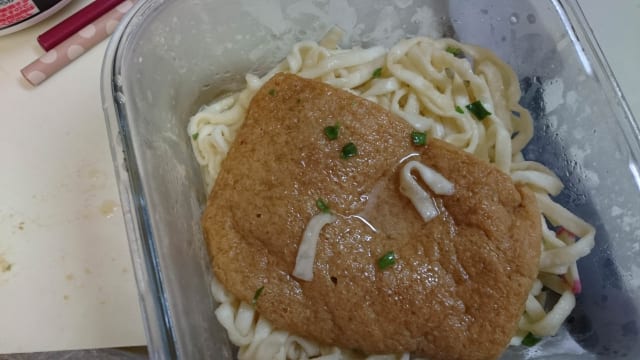 固めにうどんどん兵衛作ったら耐熱皿に移す