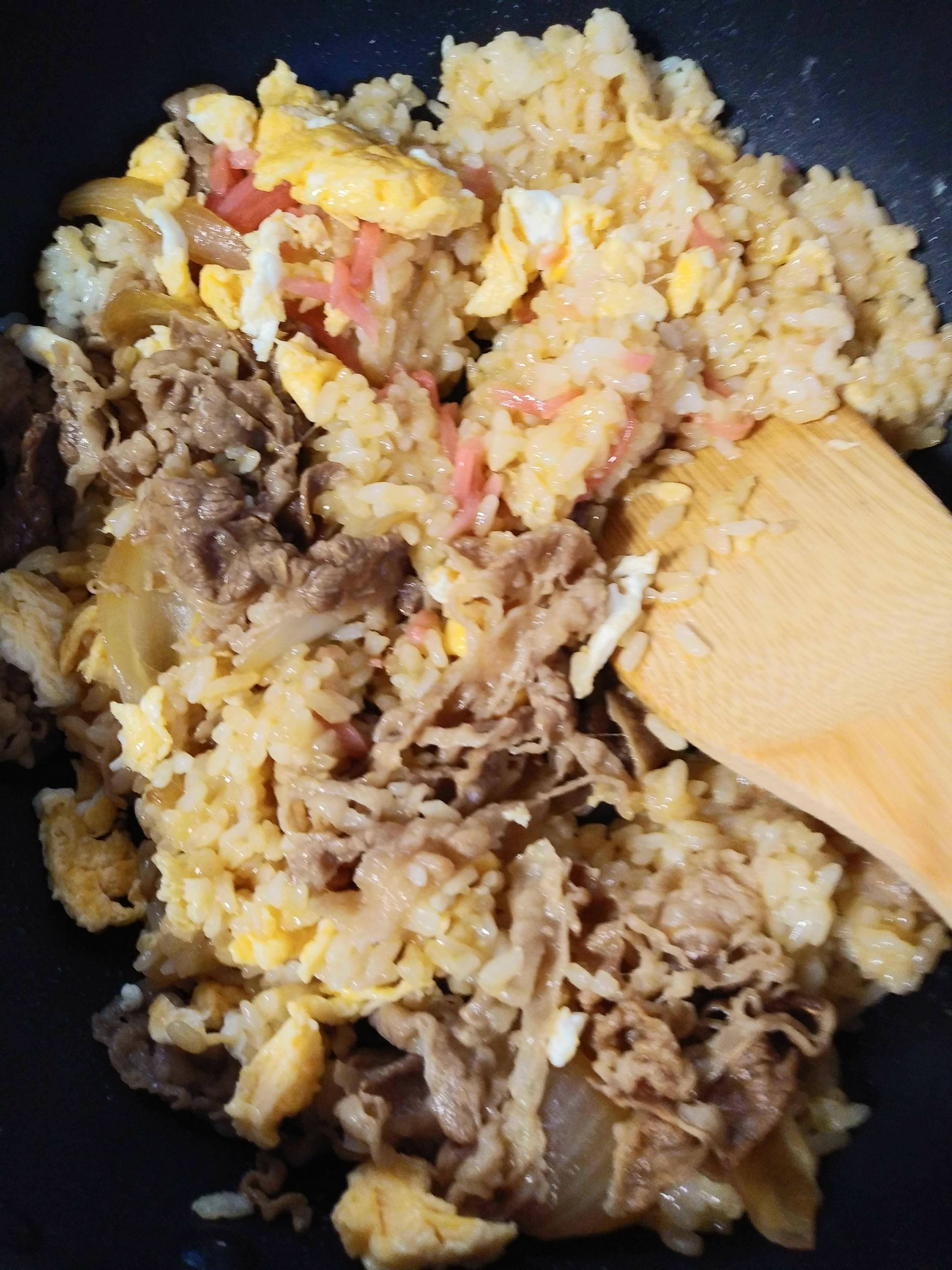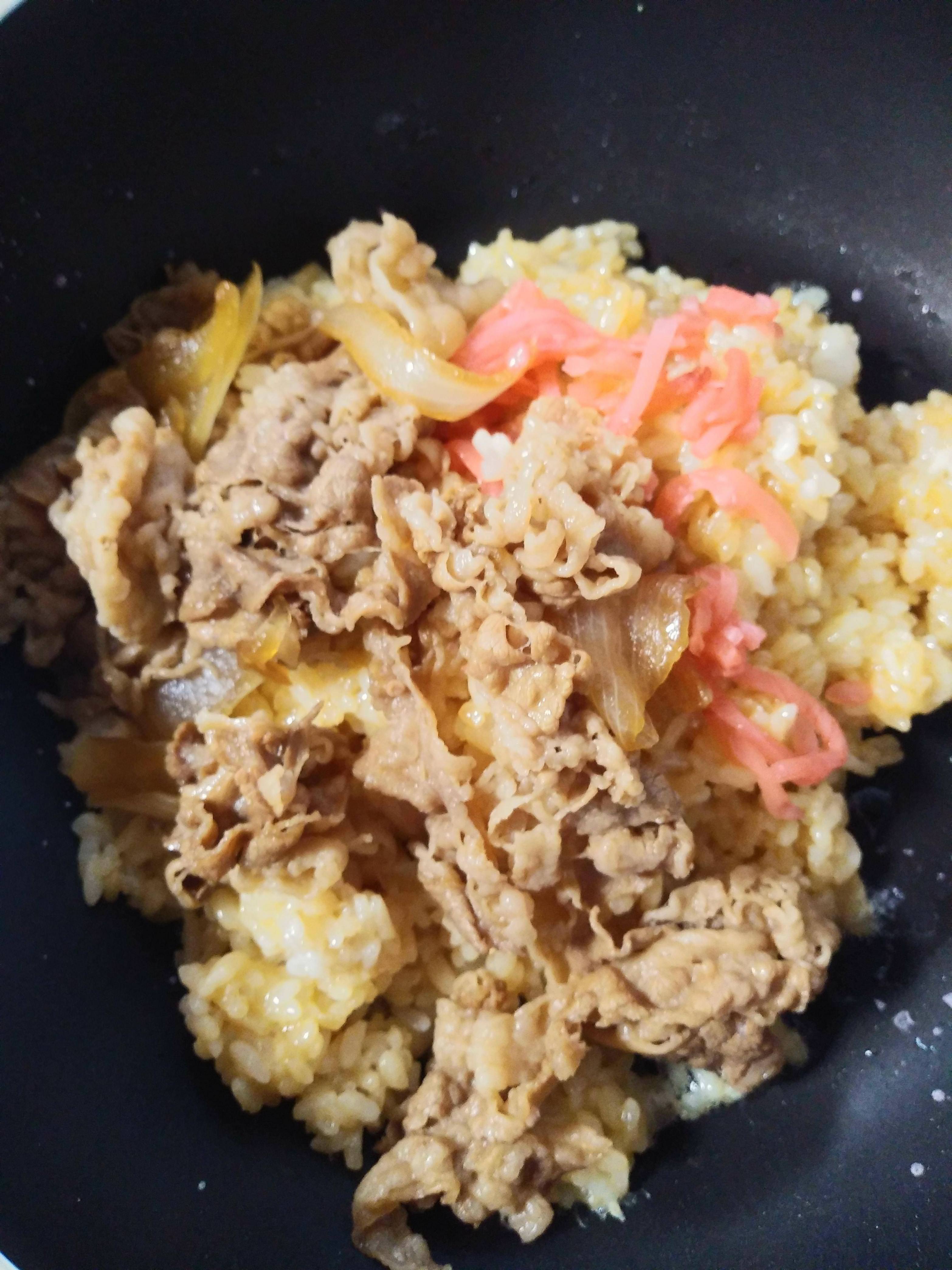 ワイ、牛丼を焼き飯に調理してしまう