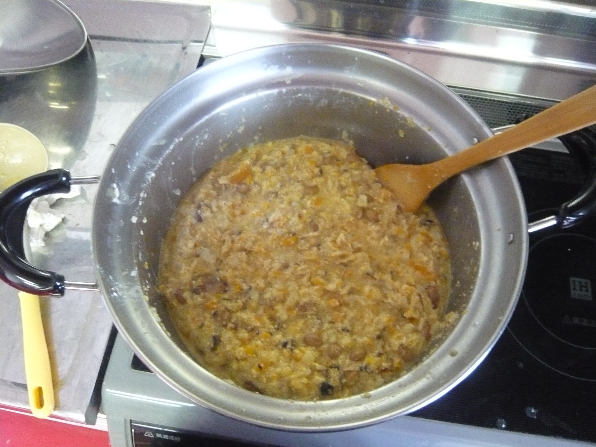 正月の新巻鮭の残りと、豆まきの豆の残りと、野菜の残りを上手く