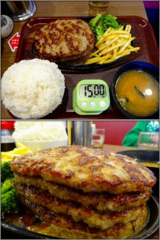 ハンバーグが200gだとして、その4倍とか食べきれん・・・まして15分とか絶対無理・・・
