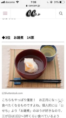 あと4位のお汁粉と雑煮が同じ写真でカオス。