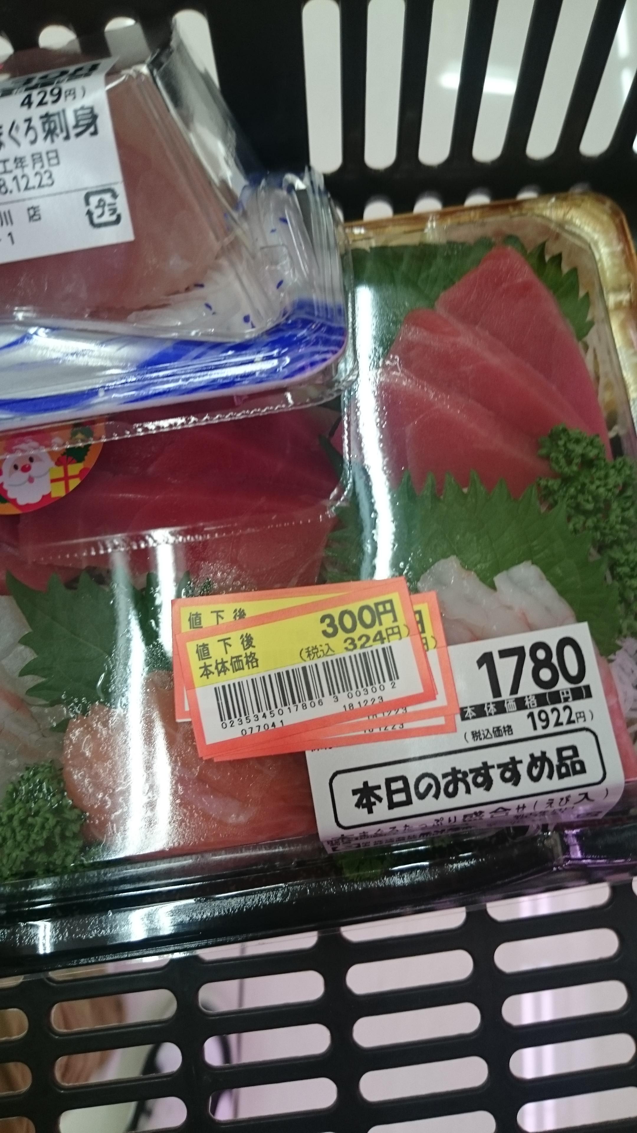 いやー久しぶりに半額ハンターの大群を見たで1日休みだから31日の夕方にすべて売り切ってしまうのか7割引き8割引きで売っていたカートの上下に生肉と刺身を山ほど入れているオバちゃんが居たがそんなに買って喰いきれるんか?ちな俺は総額1万2千円のステーキ肉〈大量〉を2千円でゲットしたぜ正月から毎日ステーキや