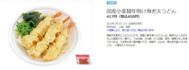 「年明け」じゃないけど普通に海老天3本入りで俺の地域で売ってるけどな