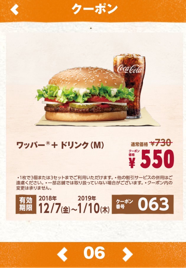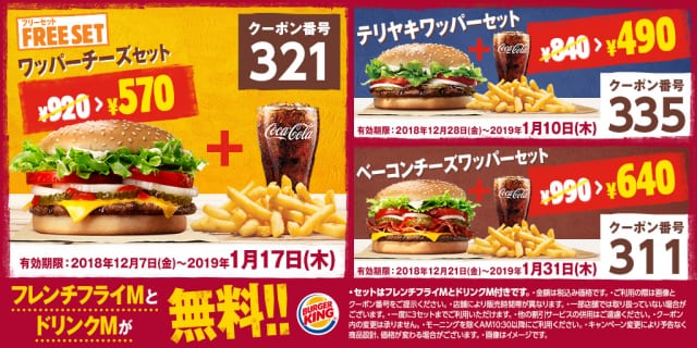 いつもクーポン使ってチーズワッパー+ポテト+ドリンクのセットを890円→590円で食べてる。