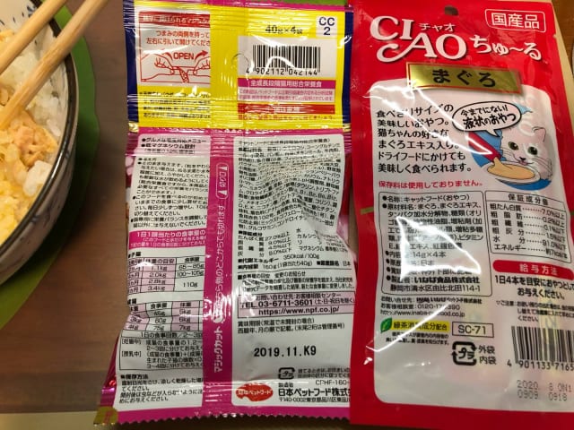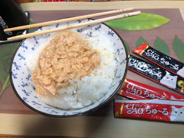 それなのに左のも買ってあるって事は実際に猫を飼っててちゅーる丼も猫にあげるようにつくったってことだよね