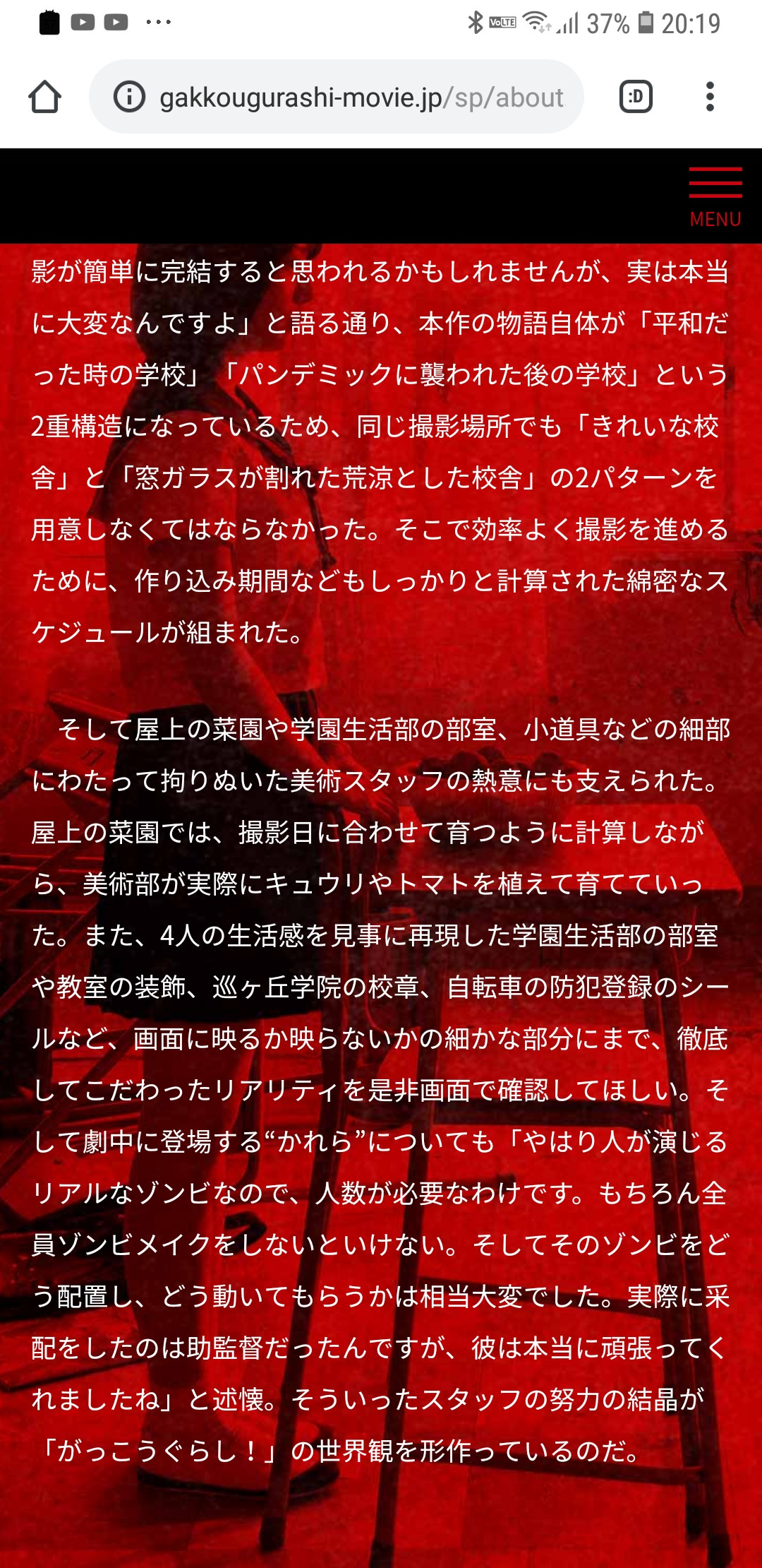 そして屋上の菜園や学園生活部の部室、小道具などの細部にわたって拘りぬいた美術スタッフの熱意にも支えられた。