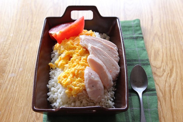 カリフラワーライス、カリフラワー臭が結構してあまり美味くない。食えない程じゃないけど。