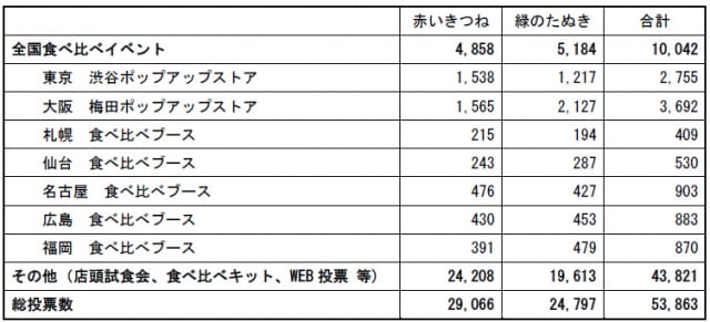 全国の食べ比べイベントでは緑のたぬき買ってたのに、その他の項目で逆転負けしたのか。