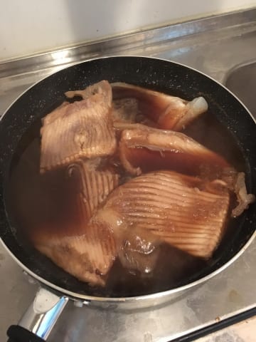 西のニキには馴染みないやろうけどカスベ(エイのヒレ)の煮付けすこなんだ
