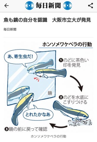 哺乳類でさえ鏡像認知出来ない奴も多いのに魚にあるなんて