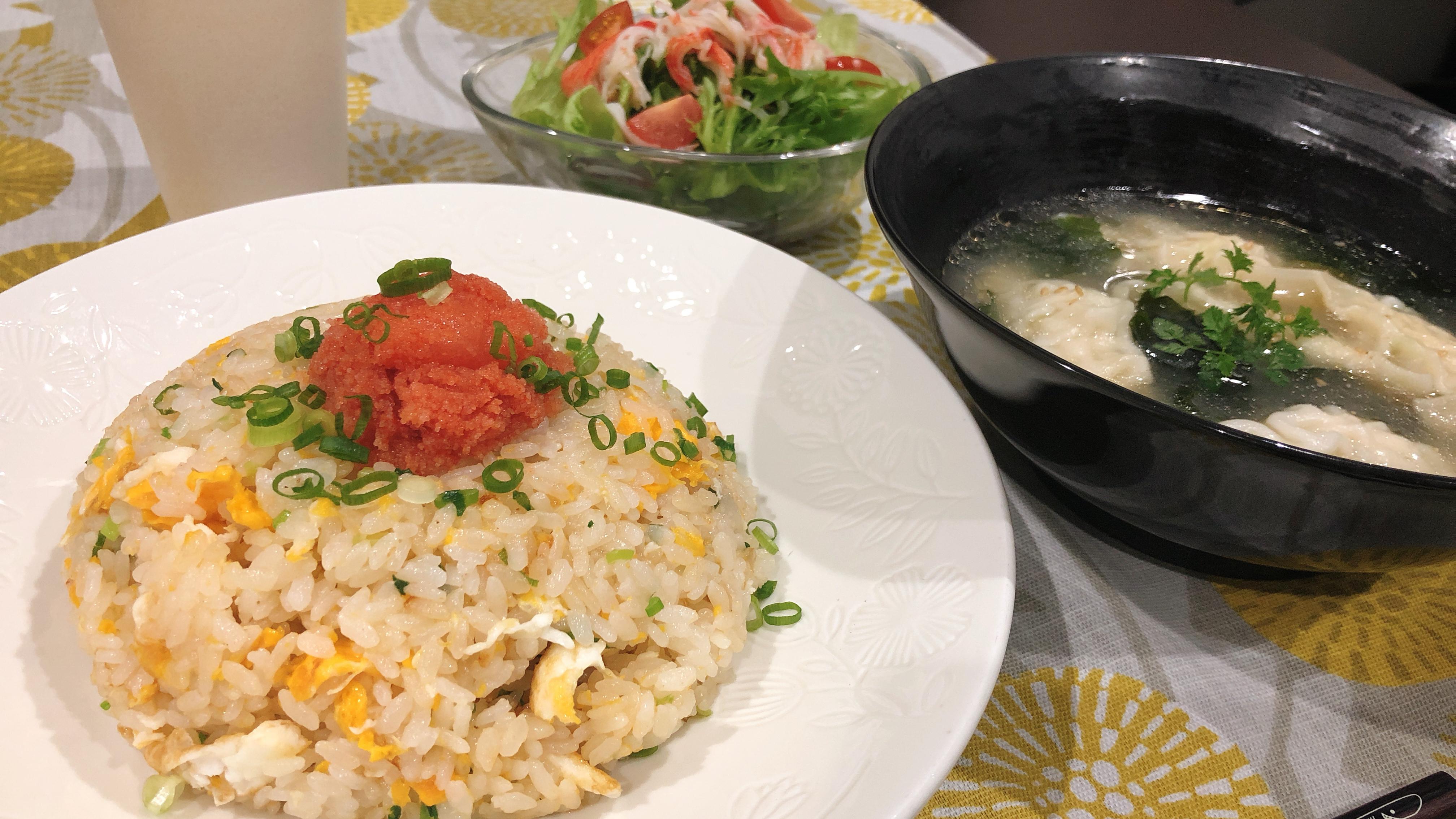 チャーハンってメインと思えないし、それとスープとサラダ…