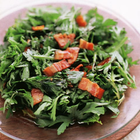 ワイ、刻んだベーコンをよく炒めて、出た油に塩胡椒とレモン絞って温かいドレッシングにして野菜食べてるわ