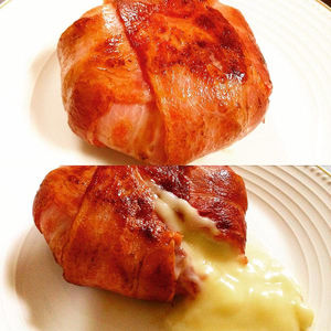 カマンベールチーズをベーコンでぐるぐる巻にして焼いて食う