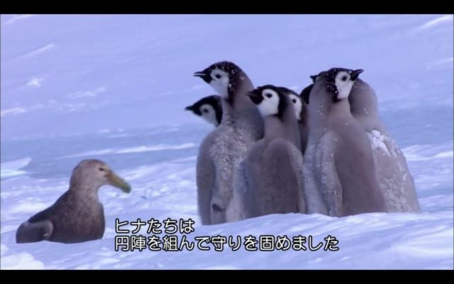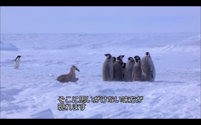 アデリーペンギンが助けたお礼に皇帝ペンギンの縄張りを取り上げて終わり