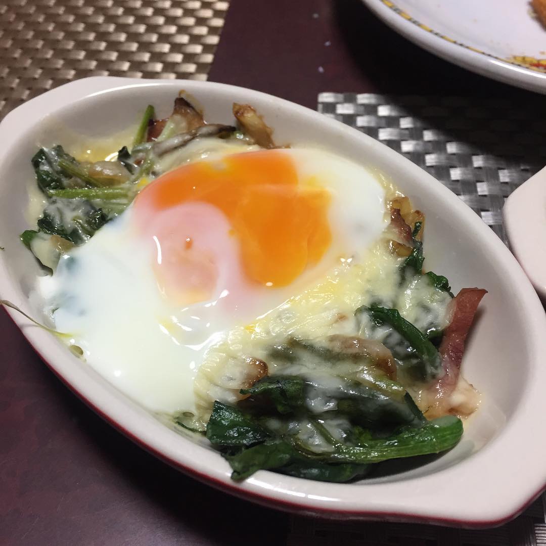 容器にほうれん草とベーコンと卵二つ入れて塩コショウしてチン