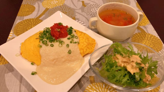 婆ちゃんが作ってくれる中身がチキンライスで、しっかり火を通した卵焼きでくるまれ、婆ちゃん自家製のトマトソースがかかった絶品オムライスが好きなんだ。