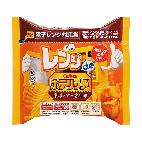 カルビーは、電子レンジで袋ごと温めて食べる「レンジdeポテリッチ濃厚バター醤油味」約16万袋を自主回収すると発表しました。発売した今週19日から22までの4日間で「焦げ」や「発煙」、「発火」が見られたとの申し出が10件あったことが原因で、「お客さまにご心配とご迷惑をお掛けし、心からおわび申し上げます」とコメントしています。カルビーはまた、今回の件を受け、来月発売する予定だった「レンジdeピザポテト」についても同じ調理方法となるため発売を中止します。