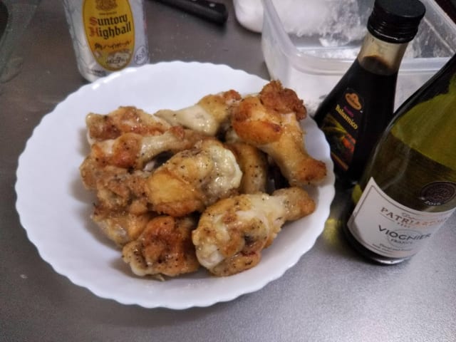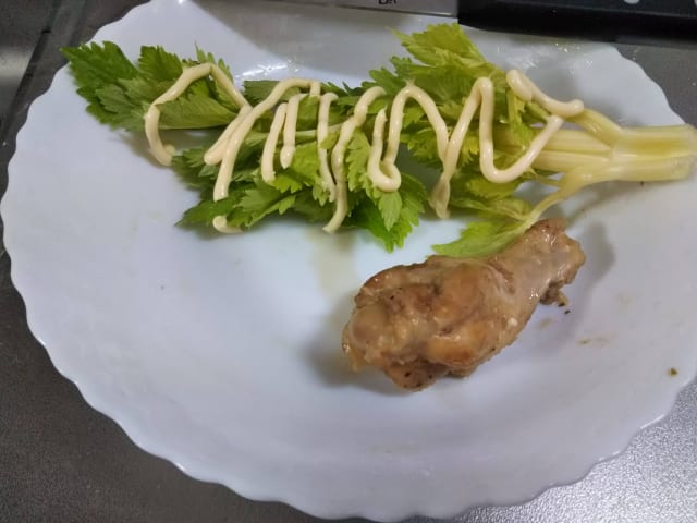 セロリと玉ねぎみじん切りにしたやつ鶏の油で炒めて、茶色くなったら鶏をぶち込んでバルサミコと白ワインと水、ローリエでコトコト煮込む