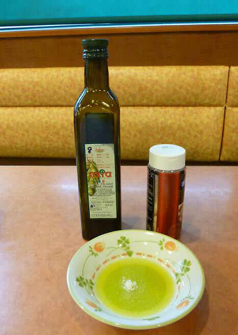 テーブルにオリーブオイル置いてあるの?