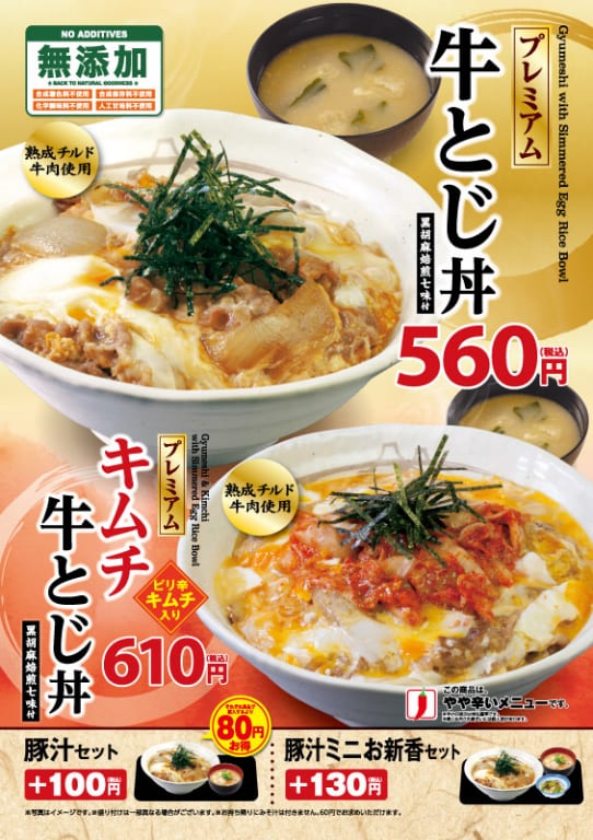 牛とじのプレミアム牛丼版とキムチ入り?