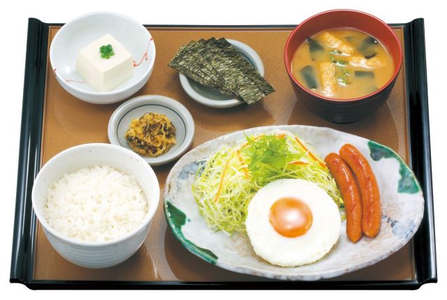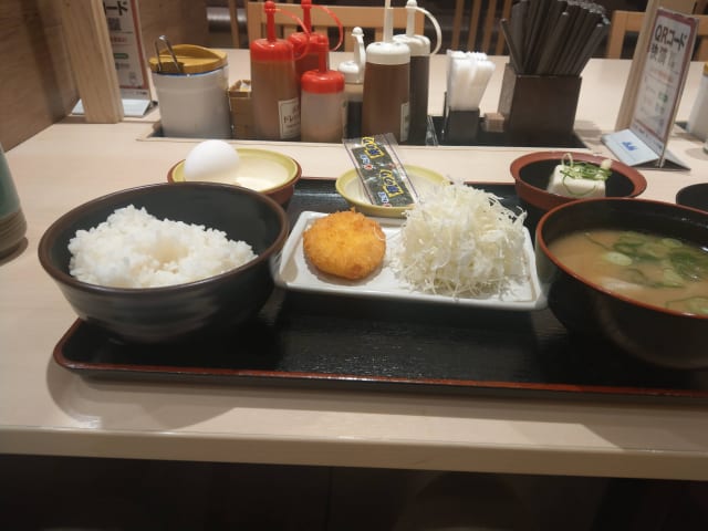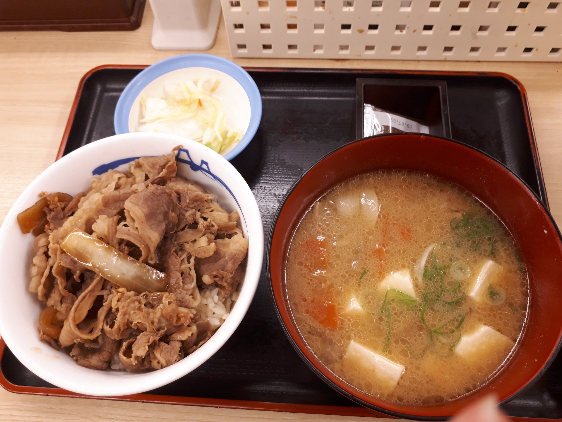 ワイも初めてやからあんま知らないんだが、多分朝限定のやつでミニ牛丼と豚汁と漬物のセットや