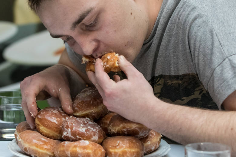パン大好きの、痩せの大食いの俺でも、あのドーナツを5分で8個は確実に無理。レスにもあるけど、20分いやせめて15分くらいかけて良いなら、腹減ってたら行けるだろうけど、5分だと5枚切りの食パン5枚でもしんどいぞ(下手したら、それじゃただのバカじゃんになりかねん)。