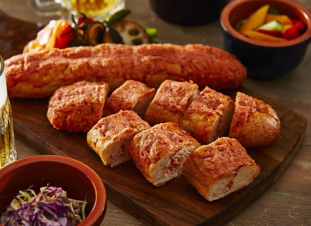 噛みごたえのある生地に、バター入り辛子明太子ソースをトッピング。女性のひと口に合わせて細い形状に仕上げられています。価格は150円。