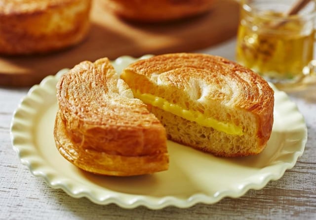 発酵バター入りマーガリンを折り込んだデニッシュで、はちみつとバター入りのクリームをサンド。外側は香ばしく、内側はしっとりした食感が楽しめるとか。価格は130円。