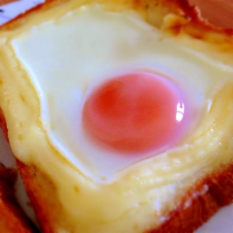 冷えた卵冷蔵庫から出してすぐ乗せて焼いてるがパンはサクサク、白身はしっかり火が通って黄身は良い感じの半熟になるぞ