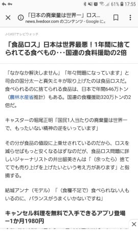 >>54 「国民一人当たりの廃棄量」ってのがポイントか “日本の10倍”米の食品ロス 解決策もビジネスに!? https://www3.nhk.or.jp/news/business_tokushu/2018_1015.html